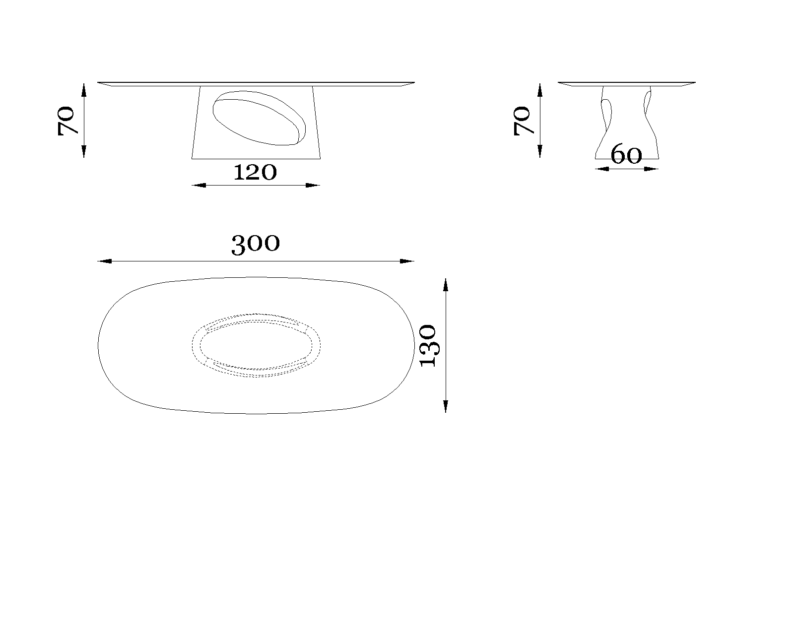 Il tavolo Ring si impone con una presenza scenografica, dove la forza del metallo incontra l’eleganza della pietra. La base, realizzata in ottone bronzato martellato a mano, si distingue per la sua forma scultorea e dinamica: un volume pieno che si svuota attraverso un’apertura ovale, creando un gioco di luce, vuoto e riflessi che dona leggerezza visiva a una struttura monumentale.