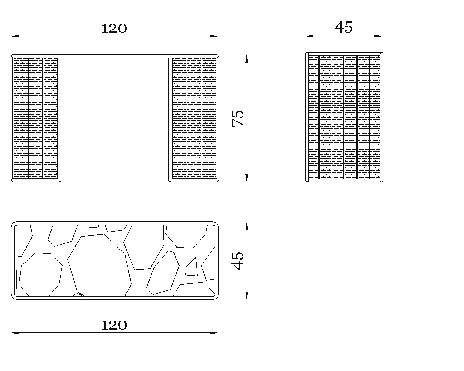 Variante sofisticata dai toni grigio-argentei. Le marcate venature orizzontali creano un effetto scenografico unico per tavoli da pranzo e tavolini da caffè esterni.