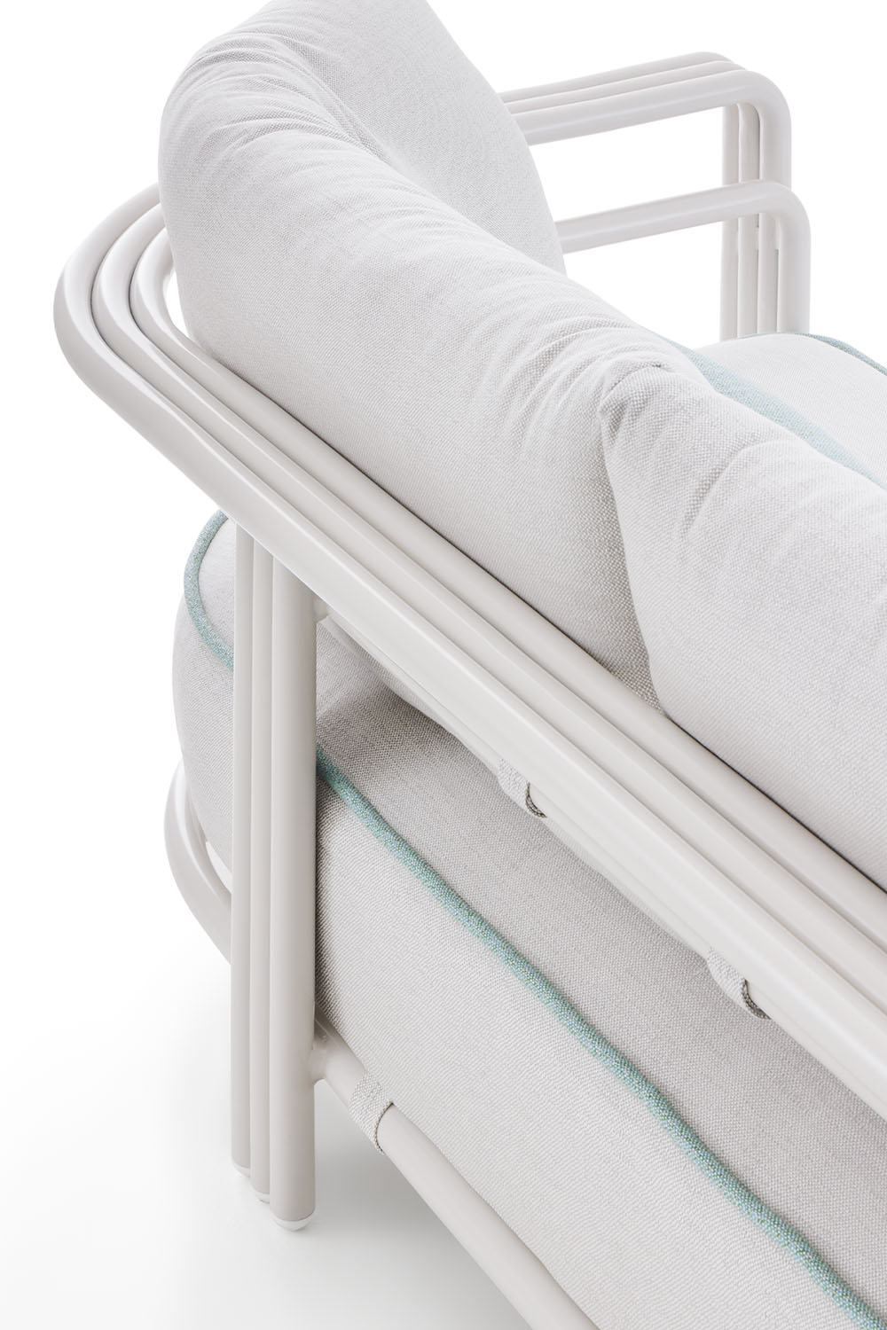 Il disegno del divano e poltroncina Capri ha un approccio distintivo e lussuoso che si rivela davvero senza tempo. è ugualmente a suo agio all’interno di una casa, su una terrazza coperta, o all’aperto per godersi al meglio un pomeriggio. Si integra con q
