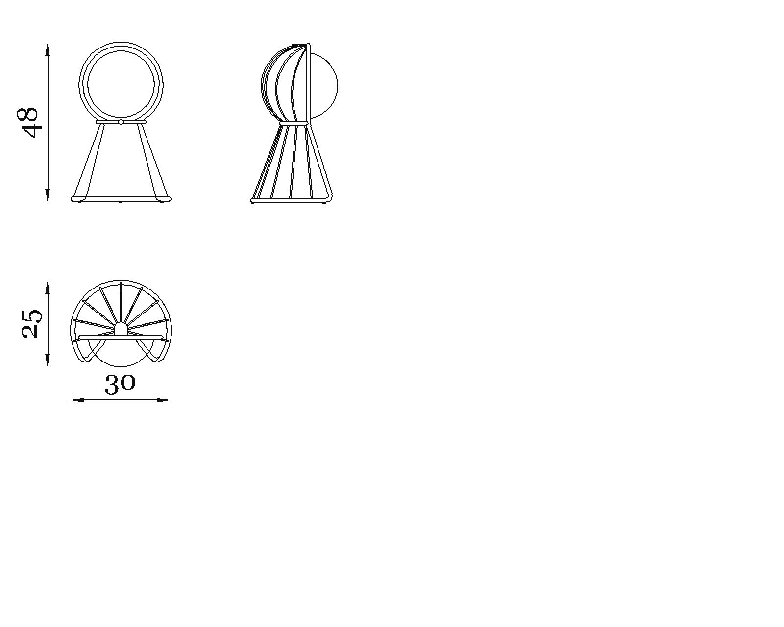 La struttura conica in metallo bronzo outdoor è interamente cordata a mano, creando un volume tridimensionale ricco di ritmo e texture. L’anello superiore accoglie una sfera che diffonde una luce calda, morbida e regolabile in intensità grazie al sistema touch con accensione a sfioro.