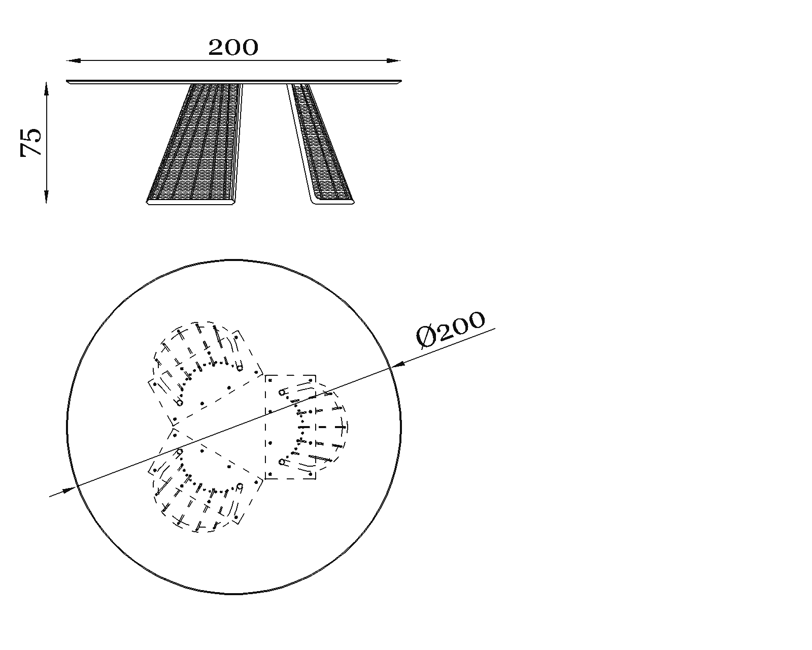 Il piano in pietra naturale da 2 cm, perfettamente levigata, con bisello, studiato per valorizzare la ricchezza materica della superficie. Il formato tondo invita alla condivisione, trasformando ogni momento outdoor in un’esperienza fluida e accogliente.